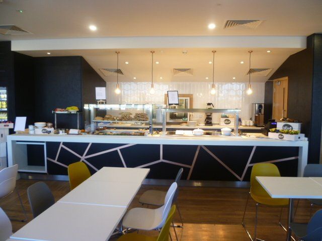 A full refurbishment of the servery area was carried out to primarily overcome poor flow and speed of service. The area was open to the kitchen and in need of aesthetic improvement generally. A temporary servery was set up whilst the works were carried out over a two week period. The new servery facility was based on a simple linear design achieved by various structural changes to the building and screening off the kitchen. The result met all the briefing requirements. Simple flow, hugely improved display of food offers, a clean line purposeful environment, and an increase in the speed of service.