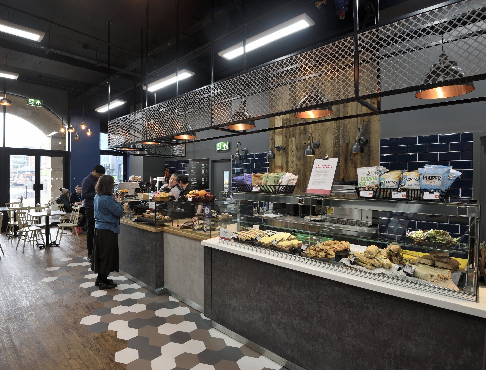Stangard were commissioned to design and install a bespoke deli/café facility within Soapworks, Salford, a multi-tenanted office facility in the former Colgate factory. Complete with kitchen to support hospitality provision