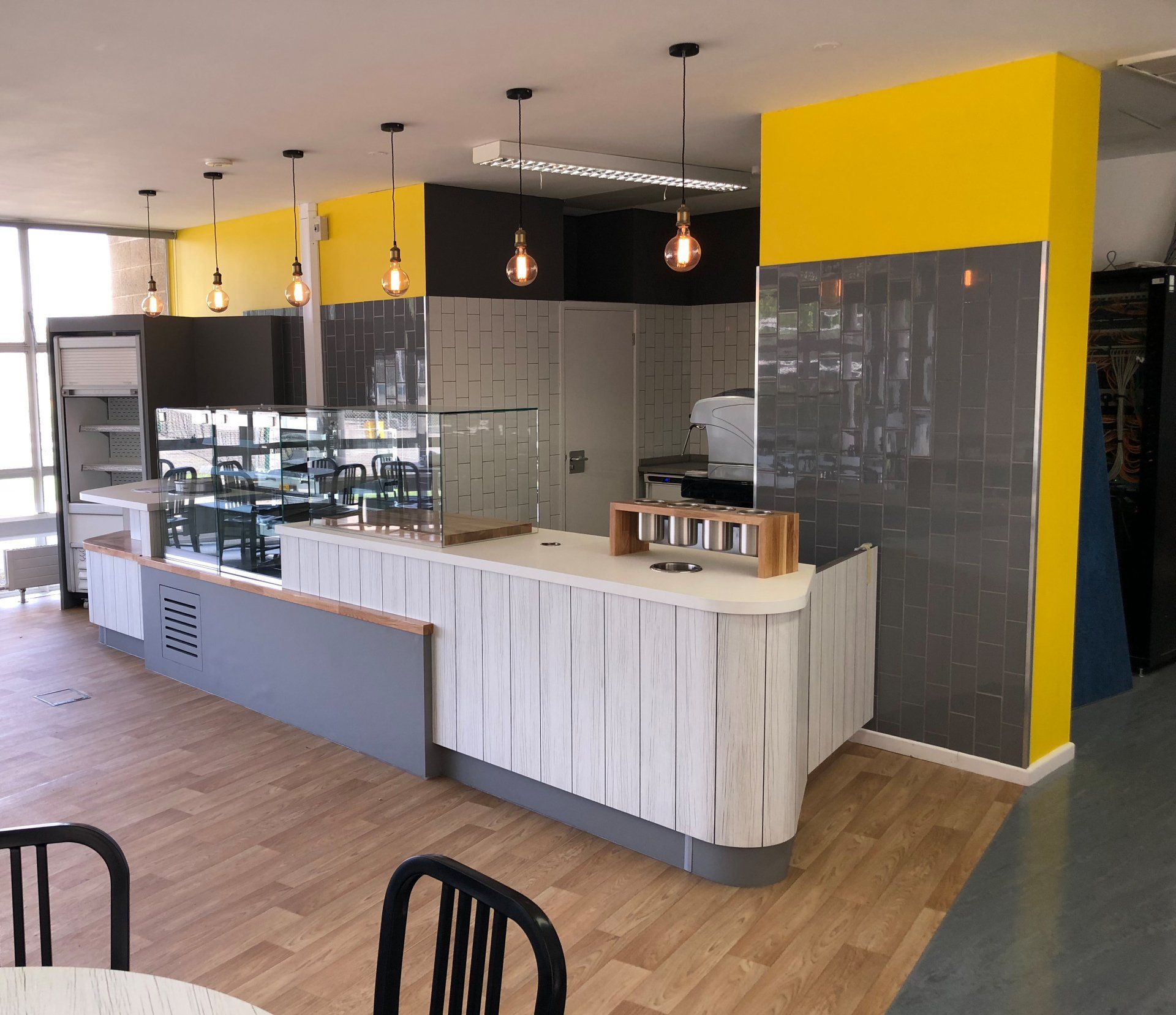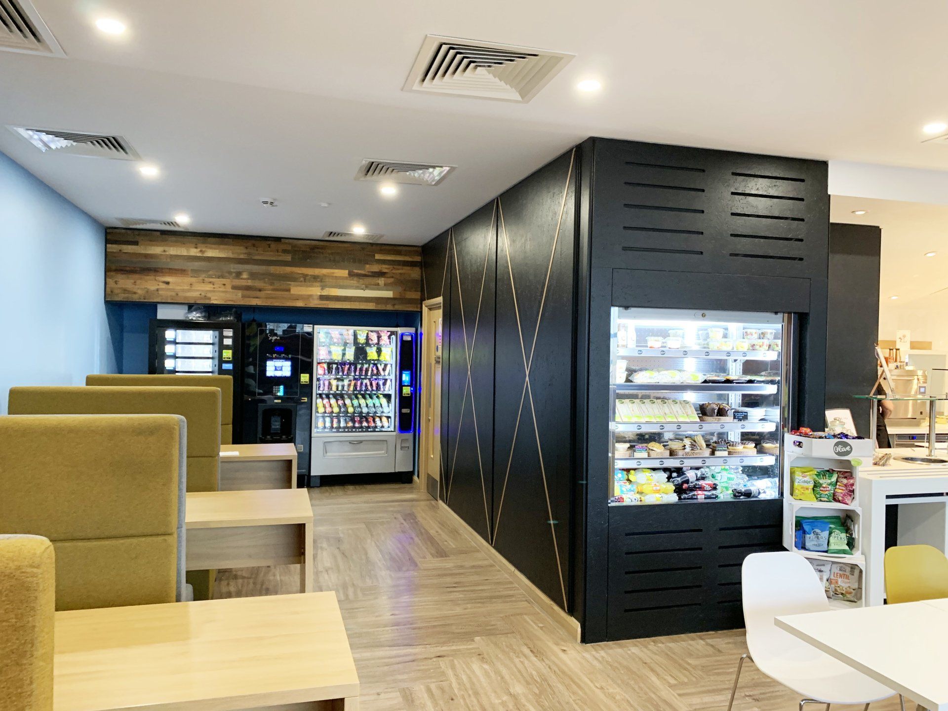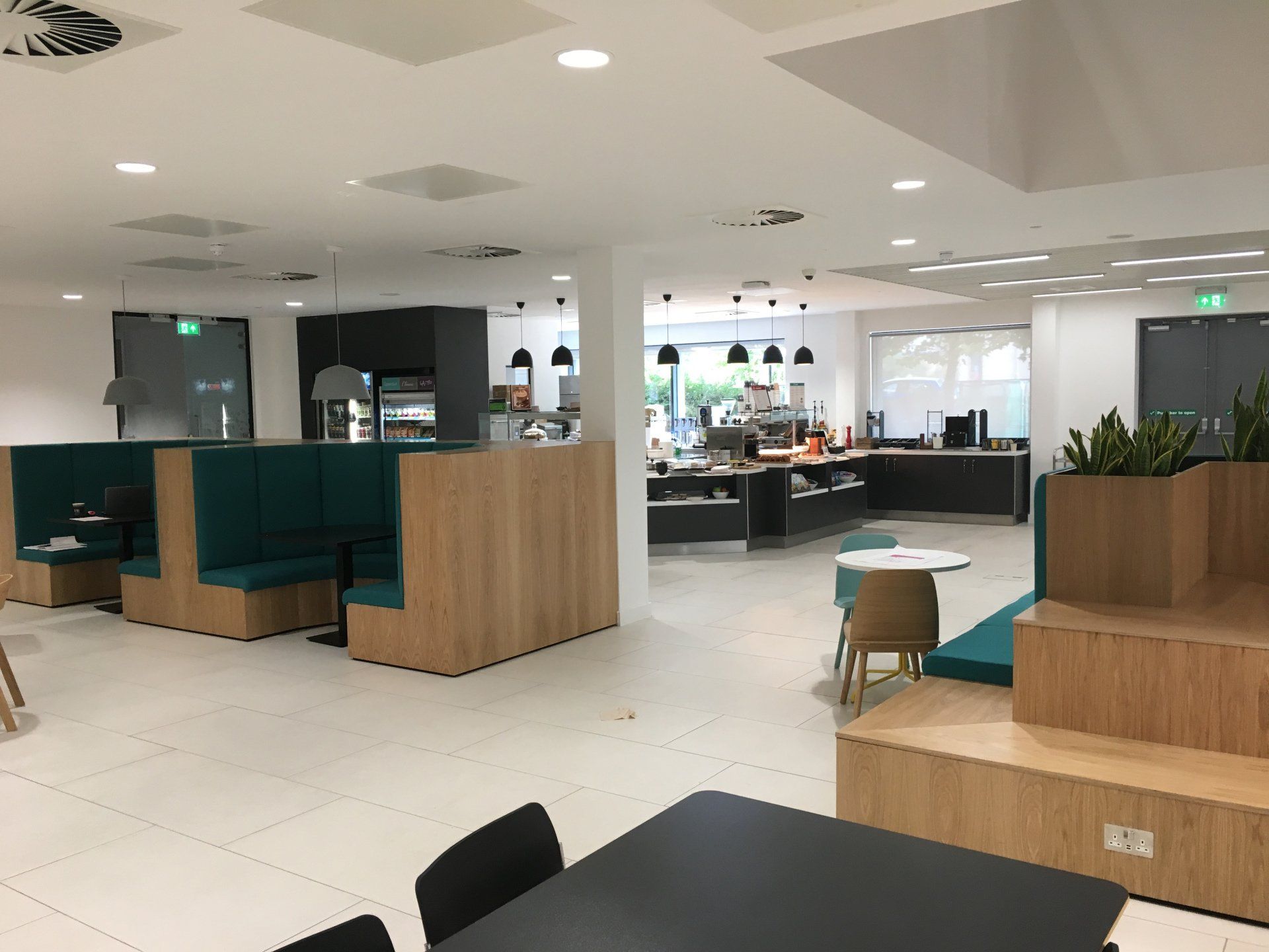 Proud to announce the completed install for Cambridge Pharmaceutical Company. An exciting project installed on time and in budget, providing a much needed coffee shop offer. The project included the creation of a dedicated staff food preparation area and the supply of on trend furniture.